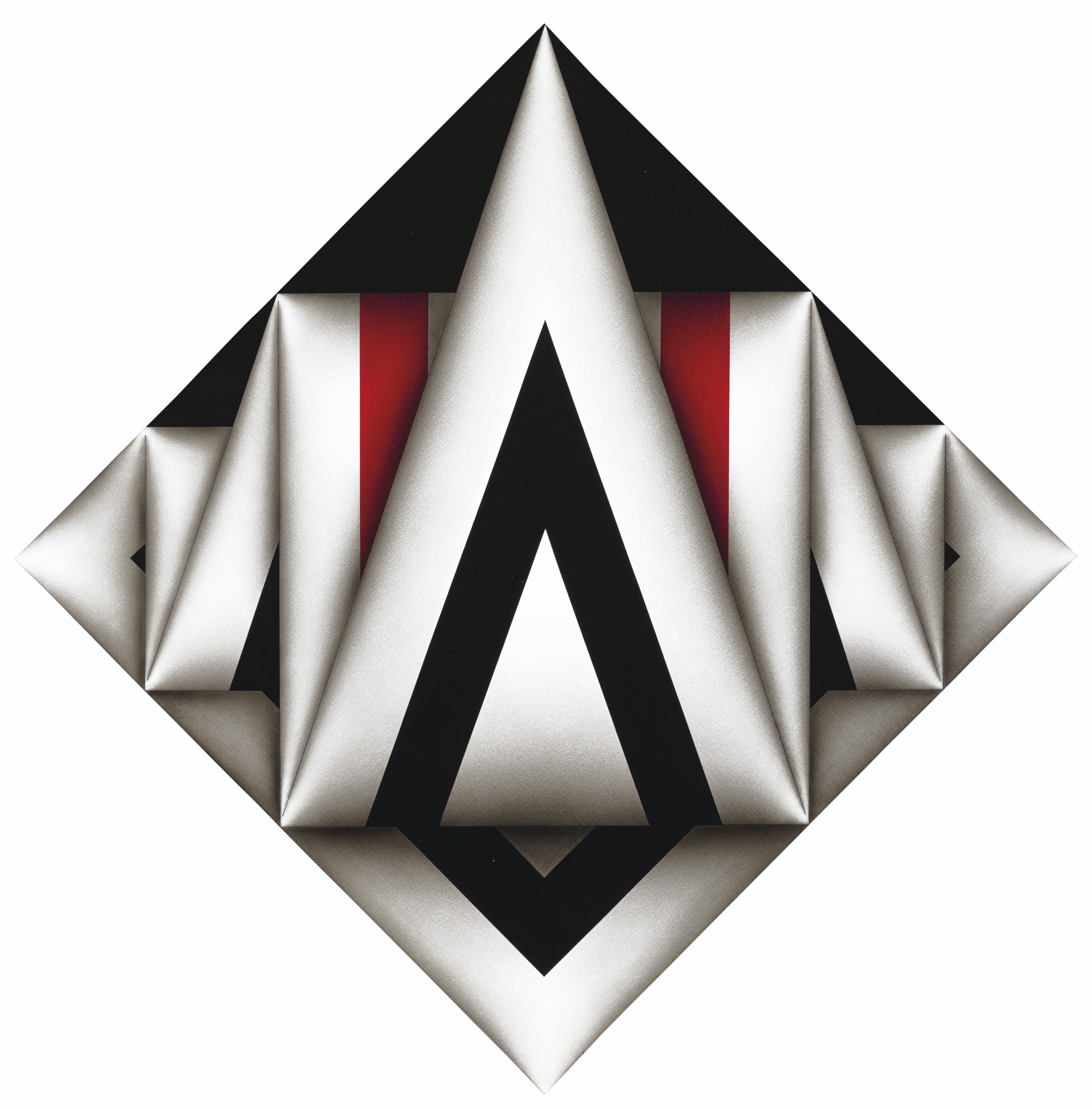 Rayo worked with abstract geometry primarily employing black, white, red and yellow.